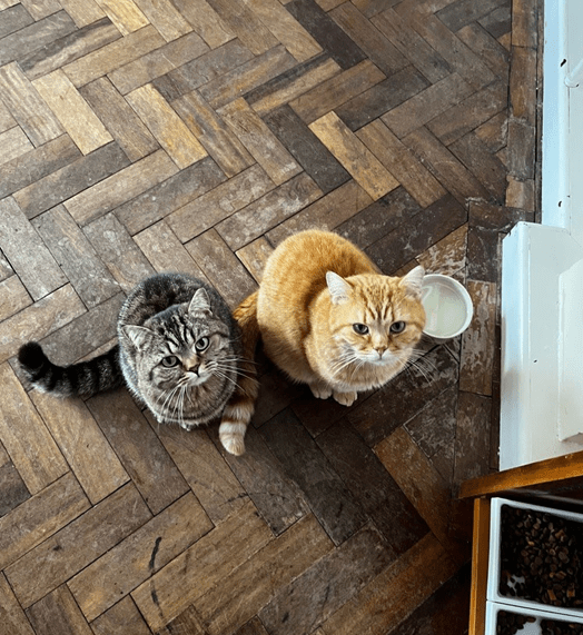 They need to go back to their flat to be fed and receive their regular medications every day. You are more than welcome to give them occasional treats when you see them, but please don’t give them meals or milk, as they are more than well fed (and milk isn’t very good for cats)!